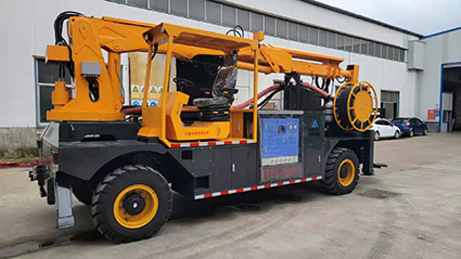 混凝土濕噴臺(tái)車包括液壓噴射機(jī)械手、噴射機(jī)(泵)、外加劑及其添加設(shè)備和電纜卷盤(pán)、空壓機(jī)等,都安裝在同一機(jī)械底盤(pán)上,是一臺(tái)集混凝土泵送、外加劑添加、混凝土噴射等多項(xiàng)作業(yè)于一體的組合設(shè)備?;炷翝駠娕_(tái)車的各組成系統(tǒng)在整體設(shè)計(jì)上統(tǒng)一考慮了其布局的合理性,做到了易于維修,并具有易于清洗的特點(diǎn)。