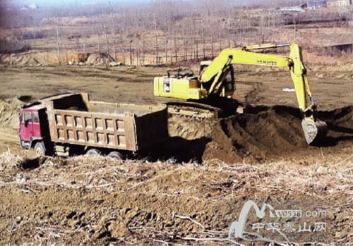 徂徠山脈,高家莊,百余畝丘陵農(nóng)田在挖掘機等工具的摧殘下,變的滿是石料,坑洼難行,“光這邊就有100多畝地,都在采石、選鐵礦等過程中被破壞了,土都被車運走賣掉了。”高家莊一村民告訴記者說。記者現(xiàn)場探訪發(fā)現(xiàn),目前仍有挖掘機在現(xiàn)場作業(yè),將農(nóng)田里的土挖掉運走。